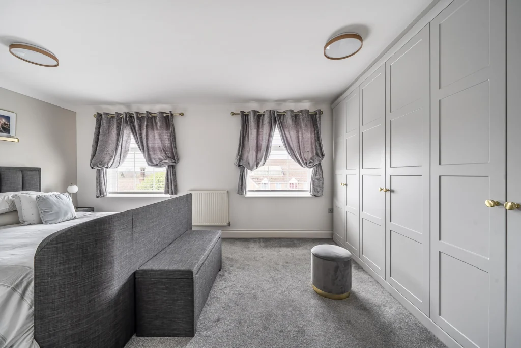The top floor is a great setup. The main bedroom has been really well thought out, with full width fitted wardrobes and a built-in dressing area, plus its own en suite shower room. Alongside that are two further bedrooms that can flex depending on what you need, whether that’s children’s rooms, guests or working from home.