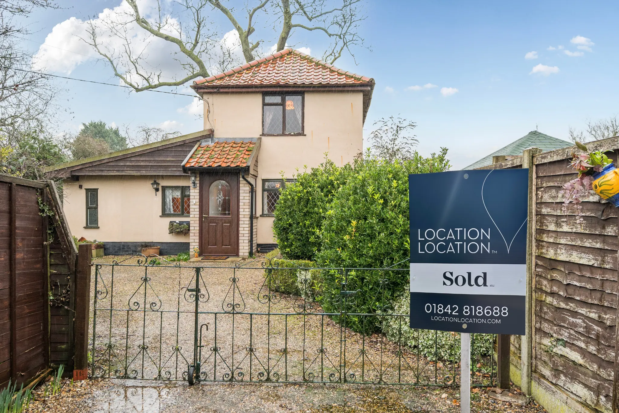Set back from Harling Road along a private driveway, The Hide is a detached former stables that sits on a plot of approximately 0.14 acres, with open field views to the rear. The property has been converted and extended over time and is now offered chain-free, presenting a clear opportunity for a buyer looking to take on a full renovation and create something of their own.