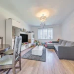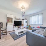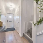 As you enter through the front door, you are welcomed into the entrance hall with laminate flooring that flows seamlessly into the living room. To the left is a cloakroom fitted with a low-level WC, a hand wash basin with a splashback, vinyl flooring, and a radiator. The hallway also provides understairs storage. From here, you’ll find access into both the living room and the kitchen/diner.