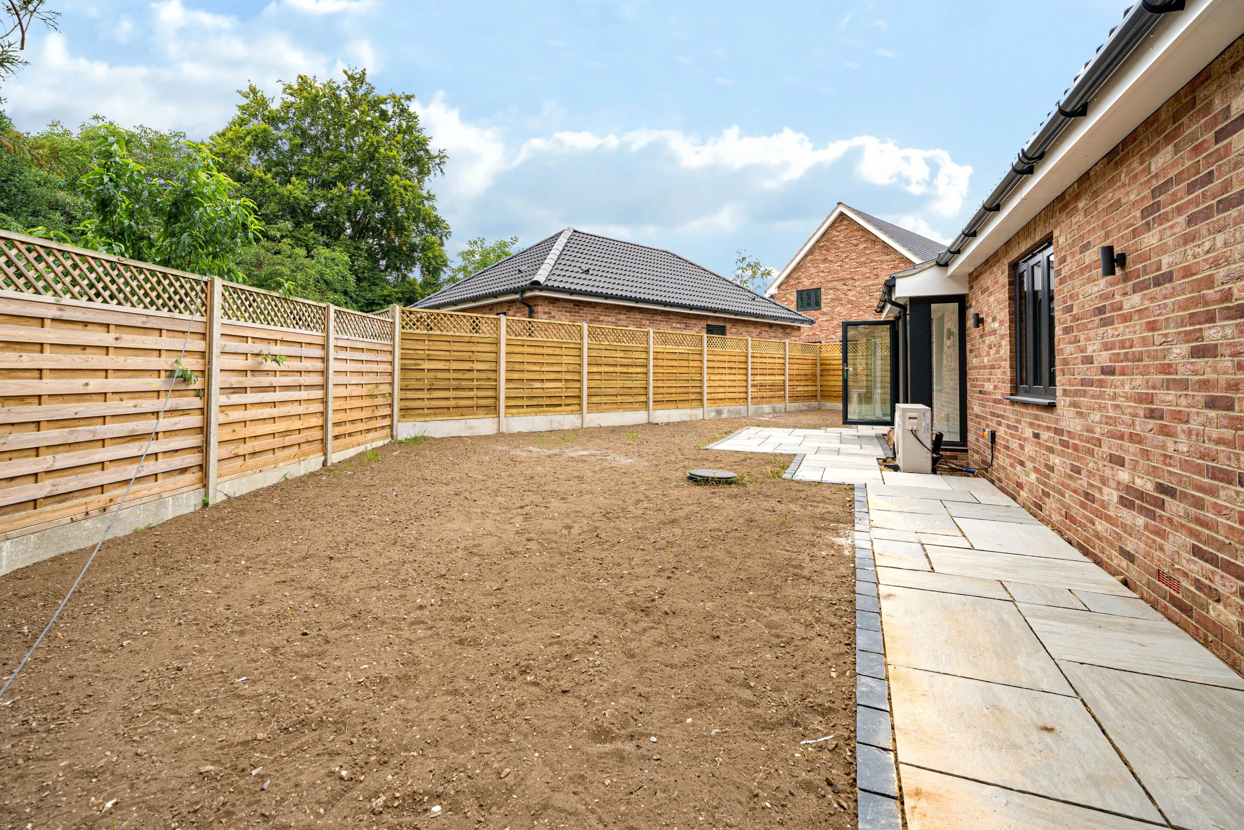 Externally, the property boasts a double-width ornate gravel driveway providing off-road parking for two cars, a fully enclosed wraparound garden, and a sunny designated patio area, with a pathway running all the way around the home.