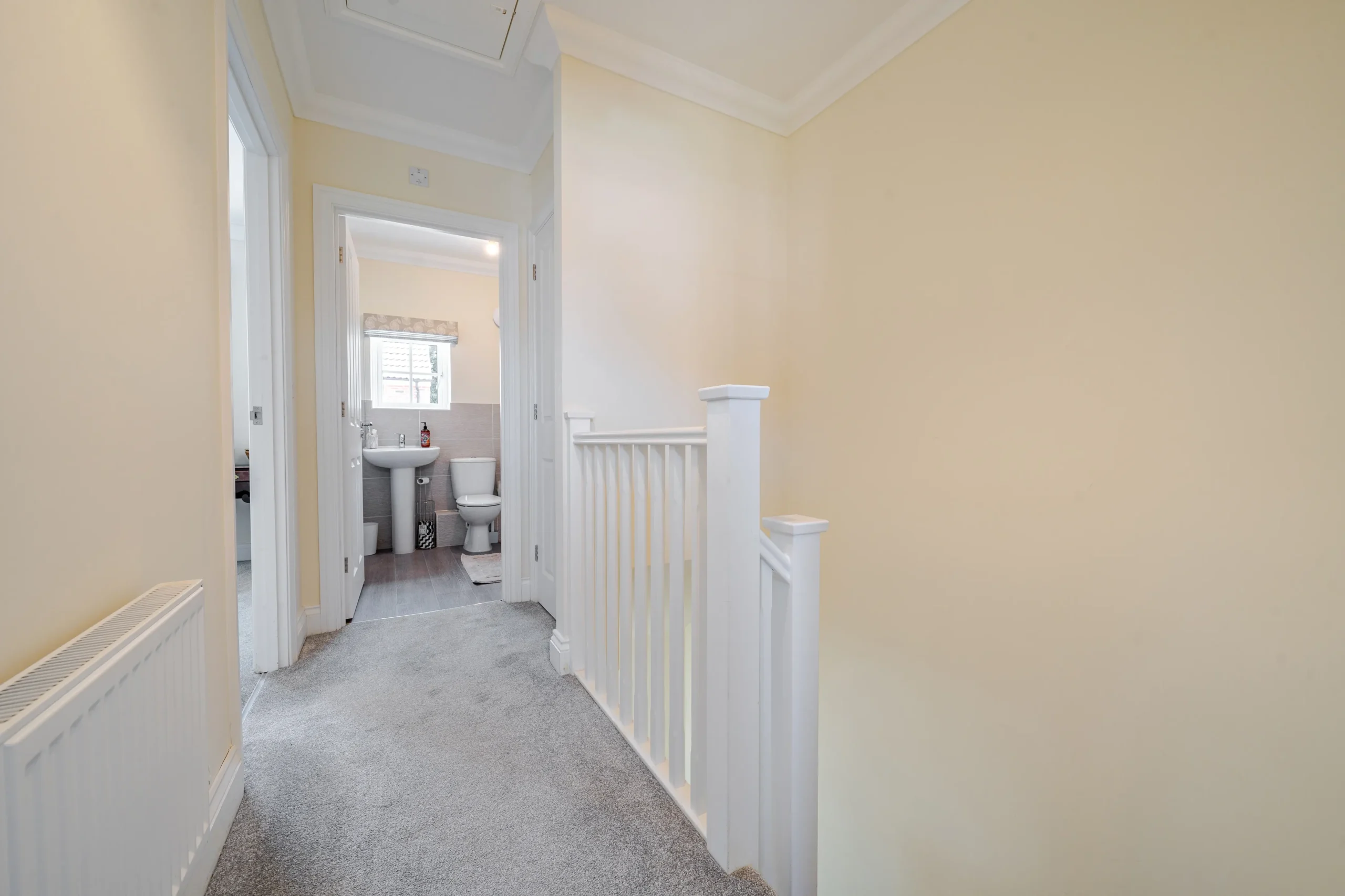 Upstairs, the landing provides loft access and a built in airing cupboard with radiator and shelving.